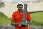 Mike Macdonald, con el Lombardi Trophy, junto al comisionado de la NFL Roger Goodell.Jeff ChiuAP