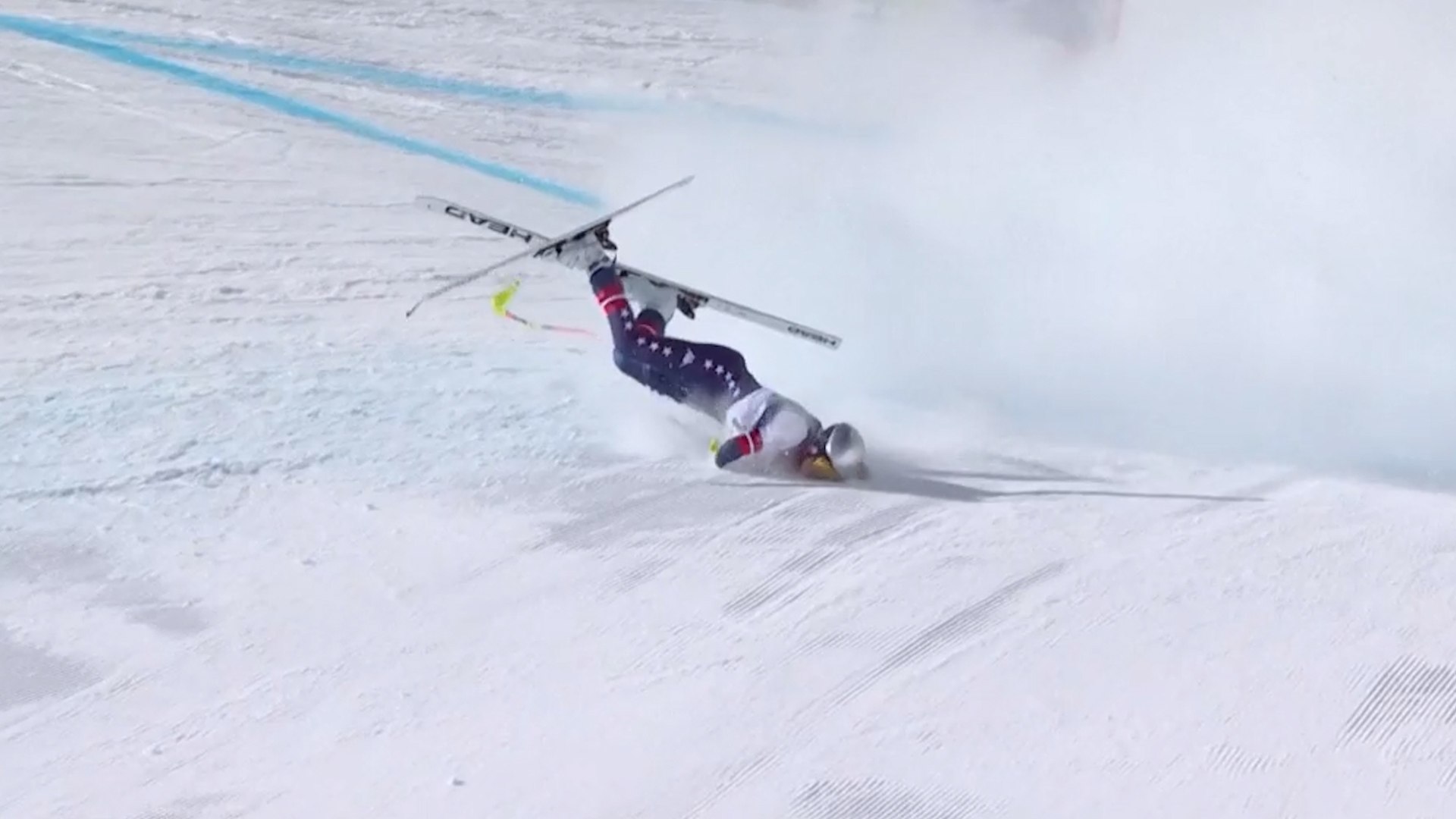 La pista Olimpia delle Tofane, una de sus preferidas y donde venció 12 veces en la Copa del Mundo, no fue esta vez talismán: la Speed Queen perdió el equilibrio en el segundo bache de la pista y tras dar con una de las puertas del recorrido, golpeó violentamente contra la pista con sus esquíes, que no se desprendieron de sus pies a pesar del fuerte impacto.