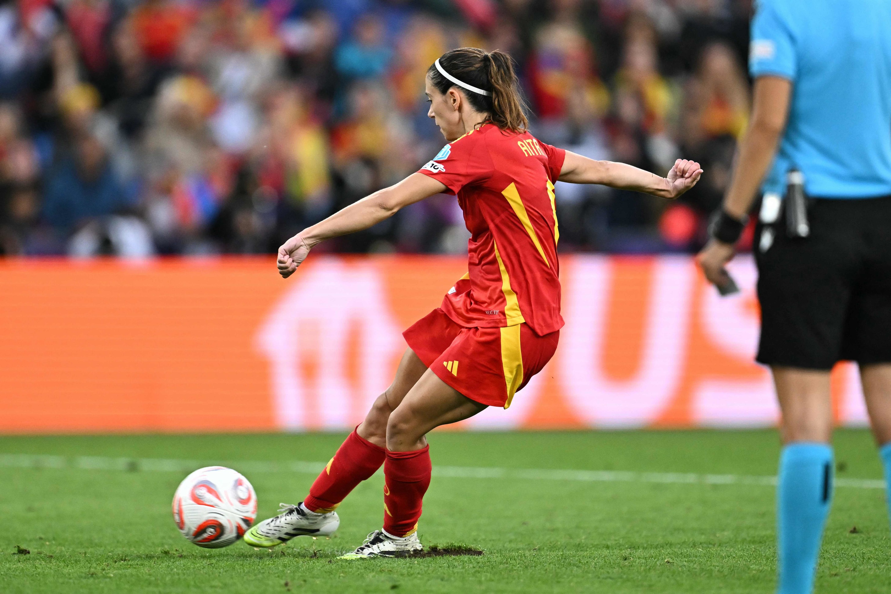 Dominaba el juego lo suficiente para no verse sorprendida, pero con imprecisiones y sin la fluidez que acostumbra. Rondaba el área, aunque sin ocasiones claras hasta que, en el minuto 11, apareció Mariona con un remate forzado que se perdió por encima del larguero, y en el 18, otra vez a balón parado, Mapi León colgó una falta que Irene Paredes cabeceó buscando portería. Ni eso aceleró un duelo, que volvió a languidecer hasta que Schröder, rondando el minuto 40, se plantó ante Cata Coll para calentarla.