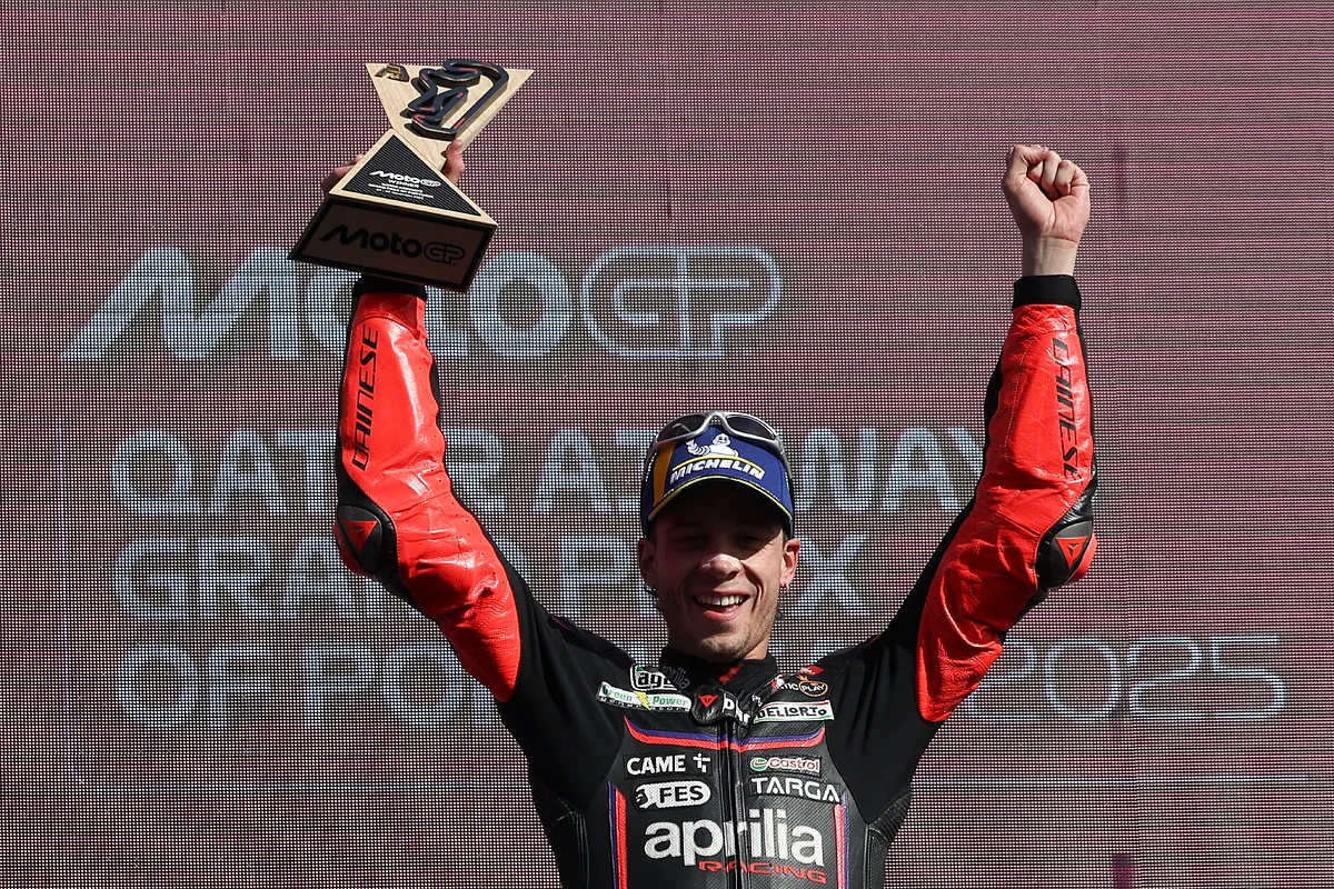«Me esperaba más, pero las Aprilia han estado increíbles. A partir de la mitad de la carrera recuperé ritmo y guardé un poco más los neumáticos. Quería este podio para finalizar con un buen sabor de boca la temporada», señaló Di Giannantonio al término de la prueba. «A cinco vueltas del final, vi que Marco cometía dos errores, le recorté tres décimas y pensé que era posible adelantarlo. Lo intenté hasta el final, pero finalizar en Valencia con podio ha sido increíble», aseguró por su parte un Raúl Fernández que, por un momento, acarició la opción de repetir la hazaña de Australia. «Me lo pasé muy bien, sobre todo al final. Me divertí muchísimo, sobre todo al final, porque Raúl iba muy rápido y se acercó muchísimo. Ha sido duro, pero estoy muy contento y muy satisfecho por cómo lo ha hecho el equipo. No había una mejor manera de finalizar esta temporada y vamos a celebrarlo, pero el martes ya empieza la 2026», zanjó por su parte Bezzecchi.